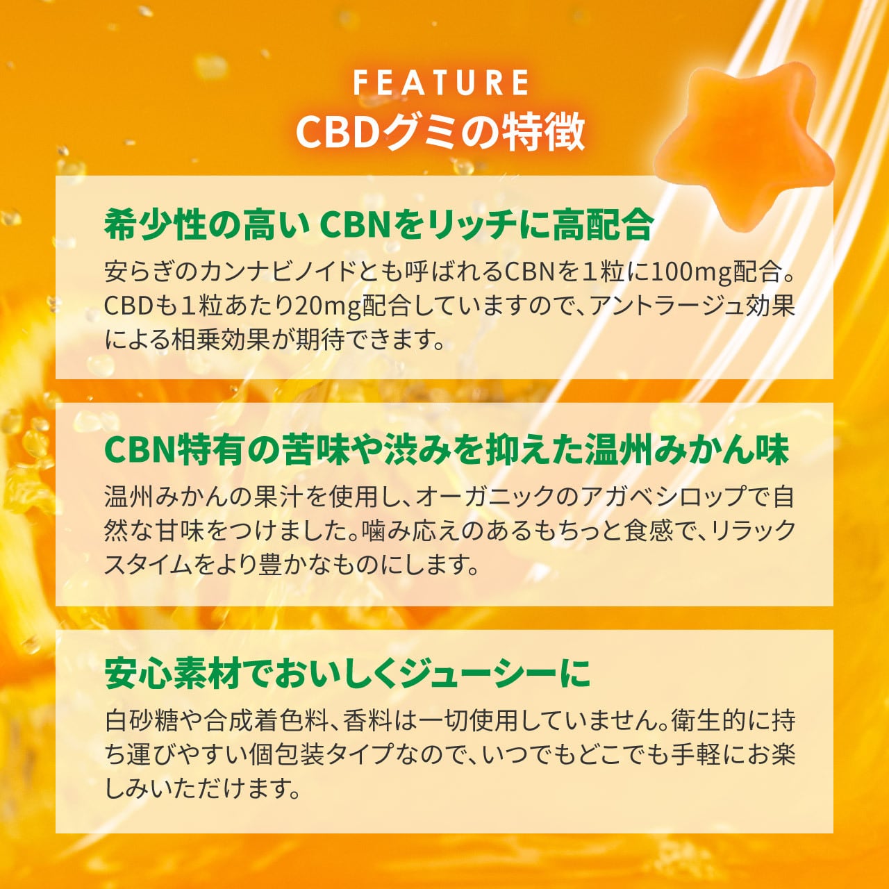 プレミアムCBN&CBDグミ-温州みかん-(CBN100mg+CBD20mg)